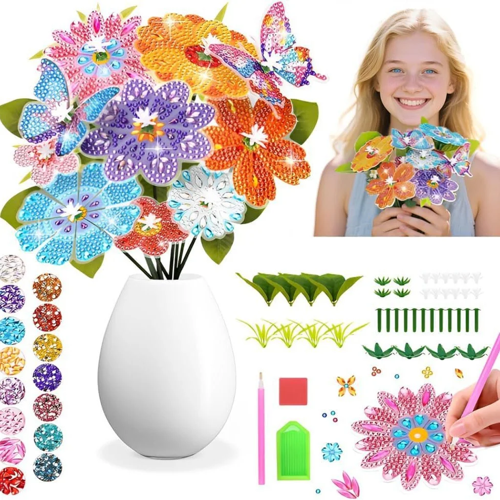 10Pcs 5D Flower Butterfly Diamond Painting Kit, DIY Vase Filler Ornament Table Decoration for Garden Home Decor