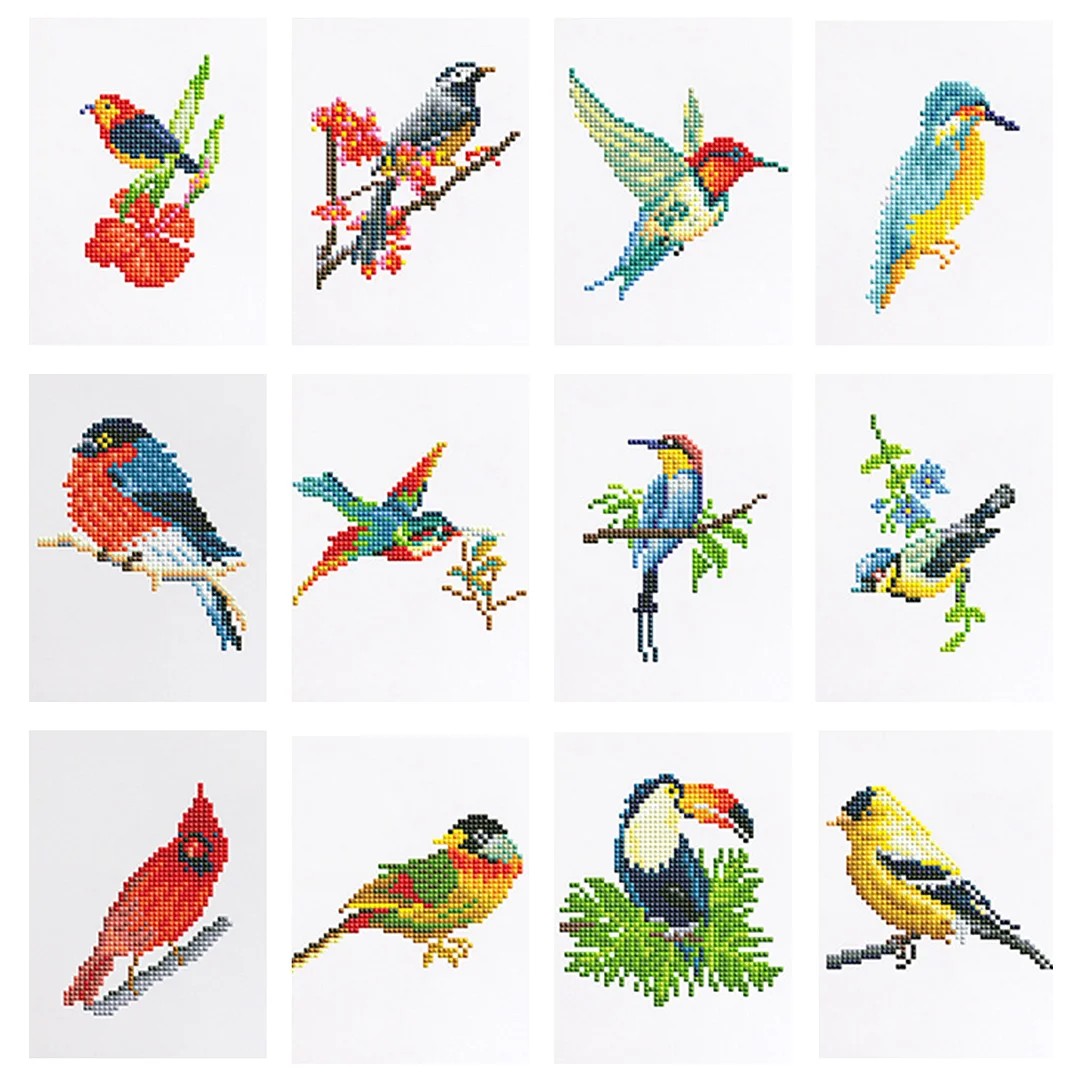 12pcs Bird 5D DIY Square Drill Diamond Painting Kits for Adults Beginners Home Decor Diamonds Paintings Gem Art 5.91x7.09in