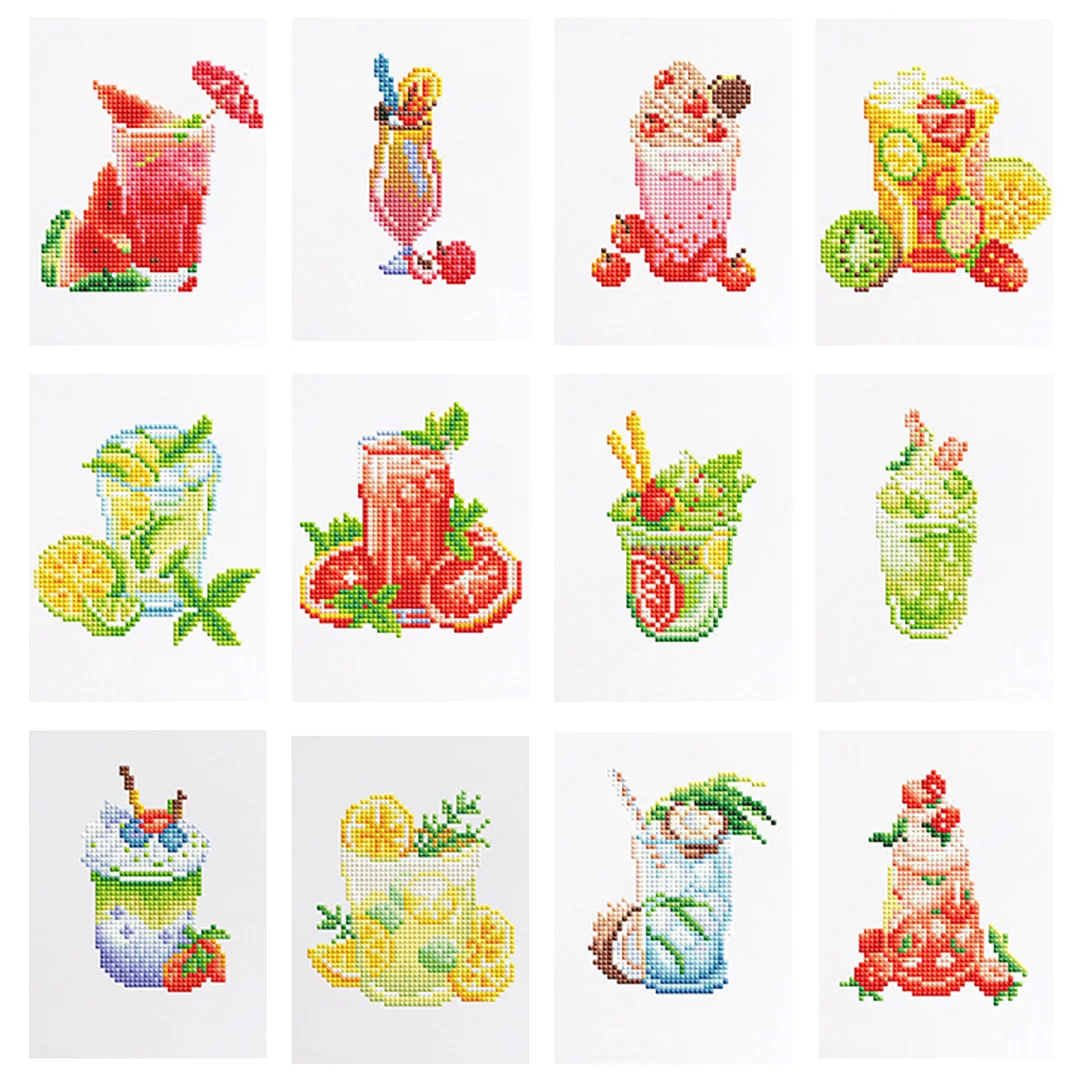 12pcs Drink 5D DIY Square Drill Diamond Painting Kits for Adults Beginners Home Decor Diamonds Paintings Gem Art 5.91x7.09in