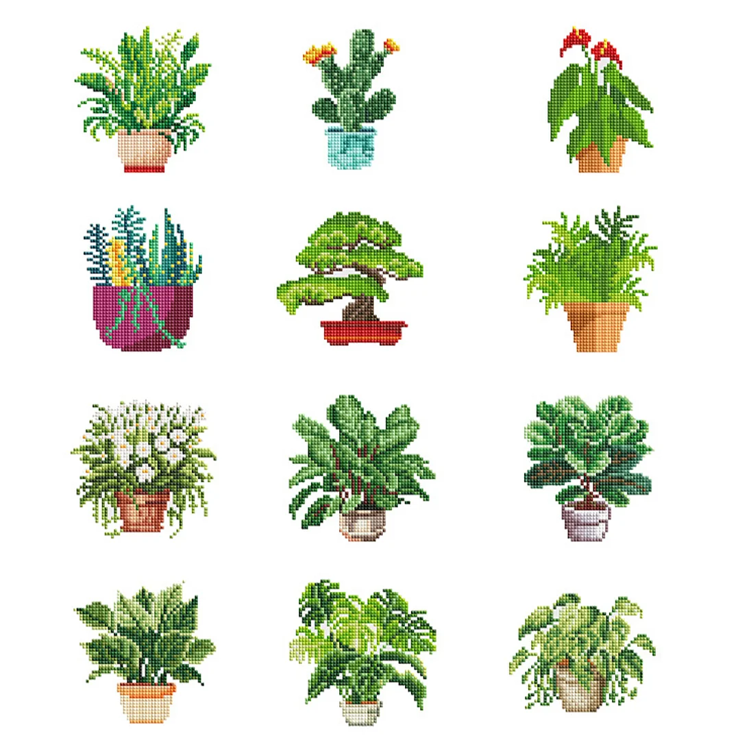 12pcs Potted Plant 5D DIY Square Drill Diamond Painting Kits for Adults Beginners Home Decor Diamonds Paintings Gem Art 5.91x7.09in