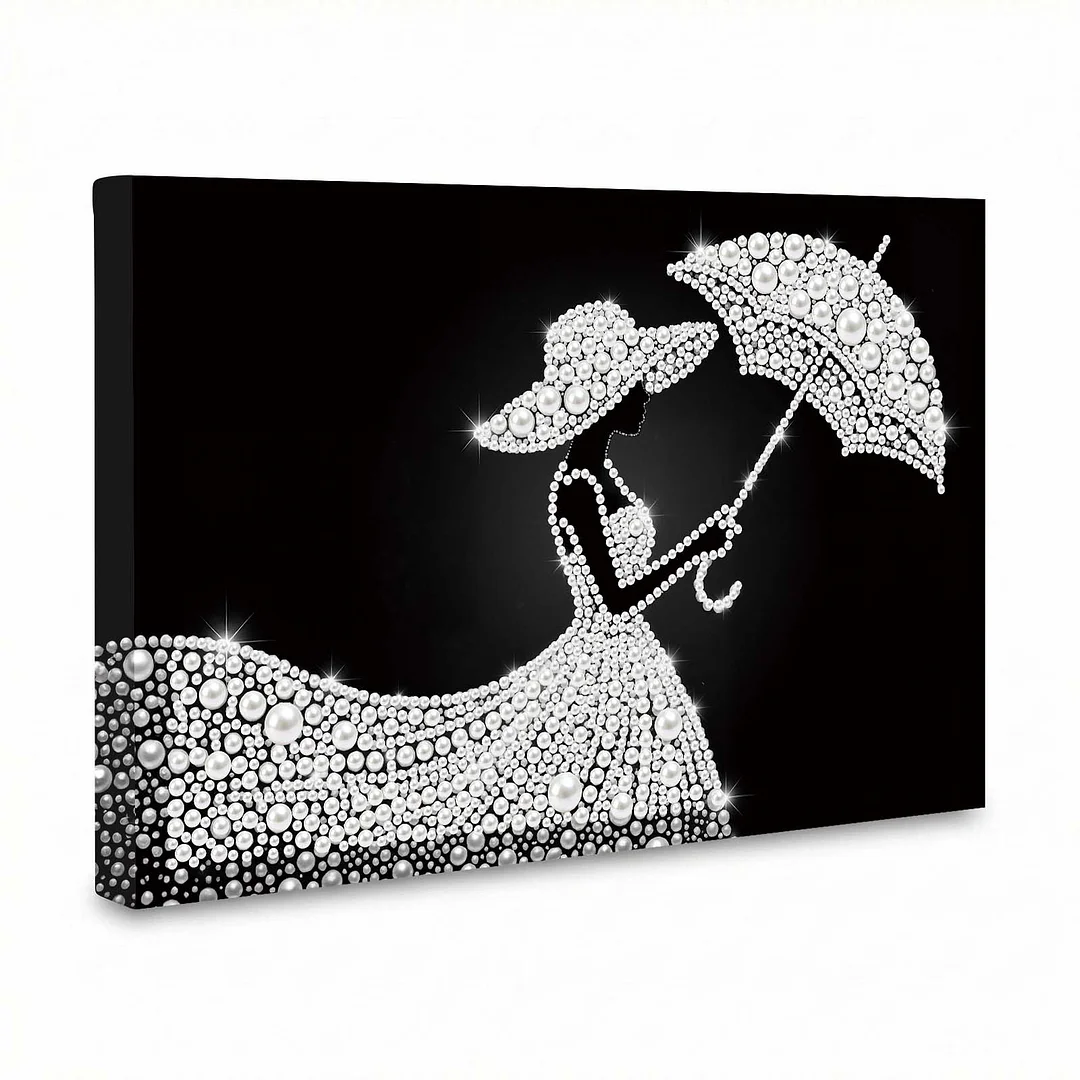(20x30cm)DIY Umbrella Lady Framed Handmade Pearl Painting Art Craft Kit Living Home Decor