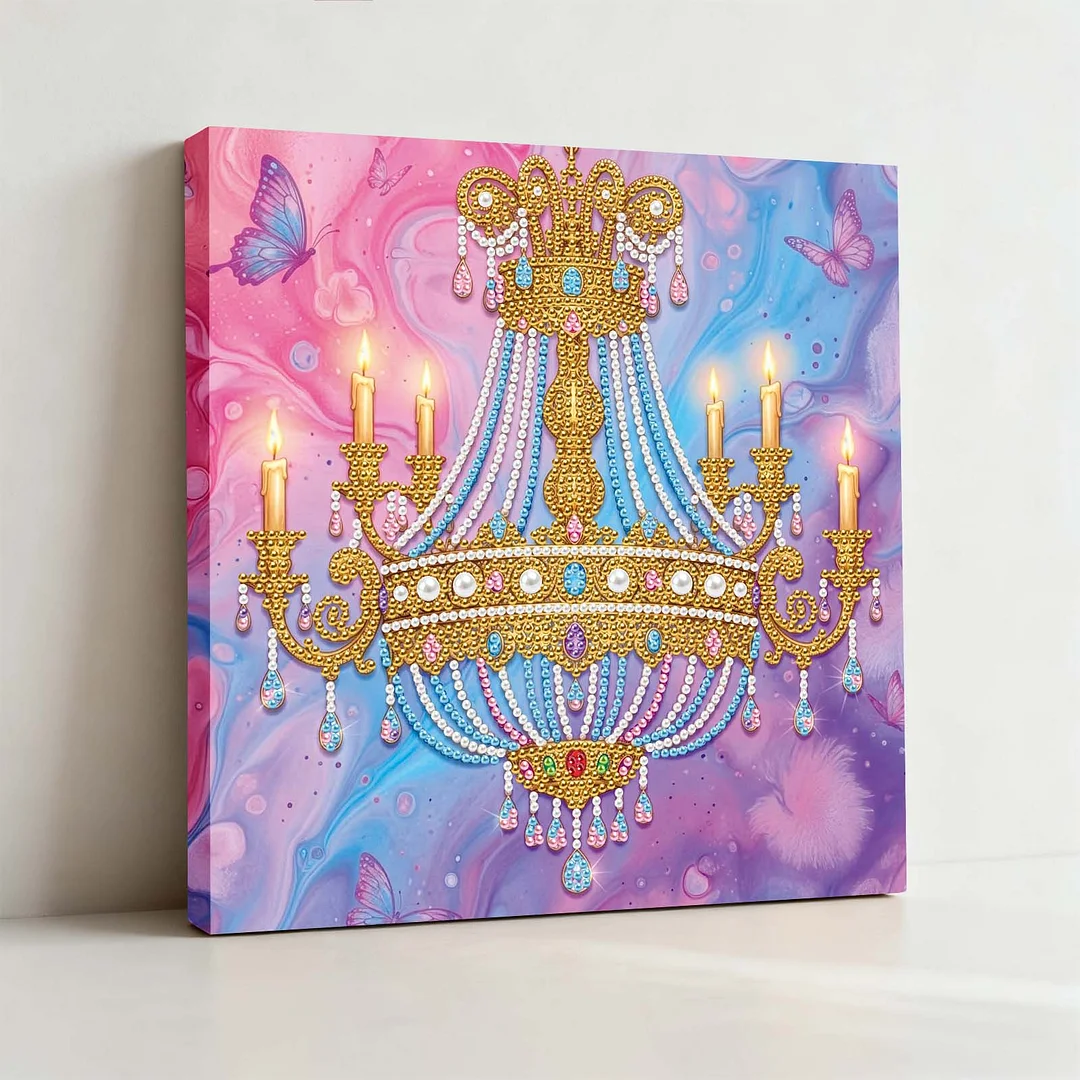 (25x25cm)DIY Chandelier Framed Handmade Pearl Painting Art Craft Kit Living Home Decor