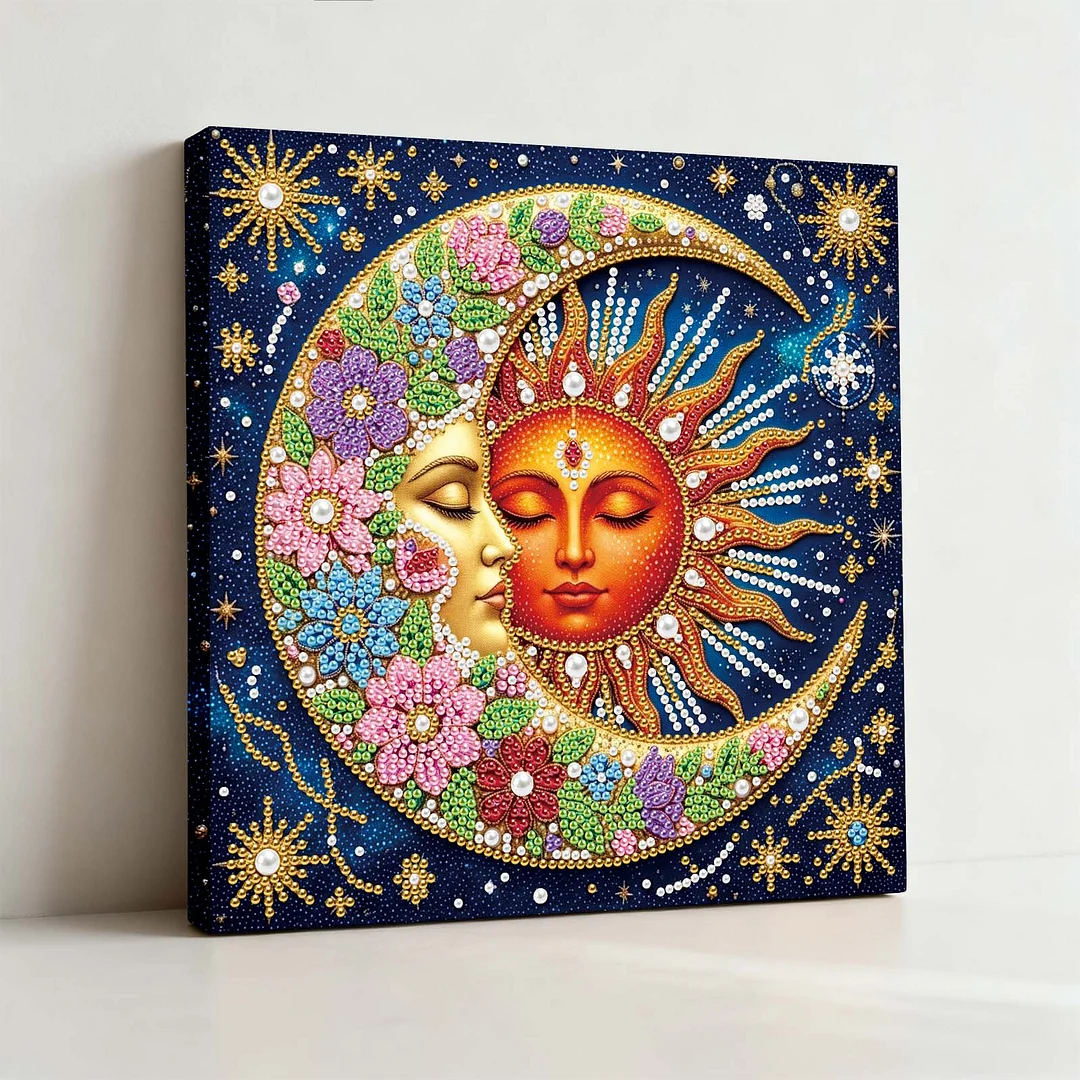 (25x25cm)DIY Sun Moon Framed Handmade Pearl Painting Art Craft Kit Living Home Decor