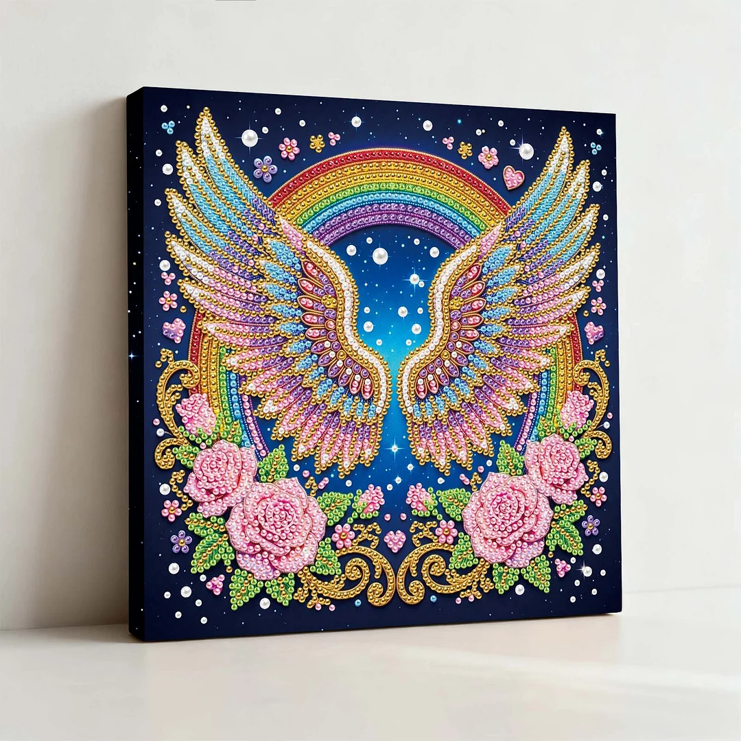 (25x25cm)DIY Rainbow Wing Framed Handmade Pearl Painting Art Craft Kit Living Home Decor