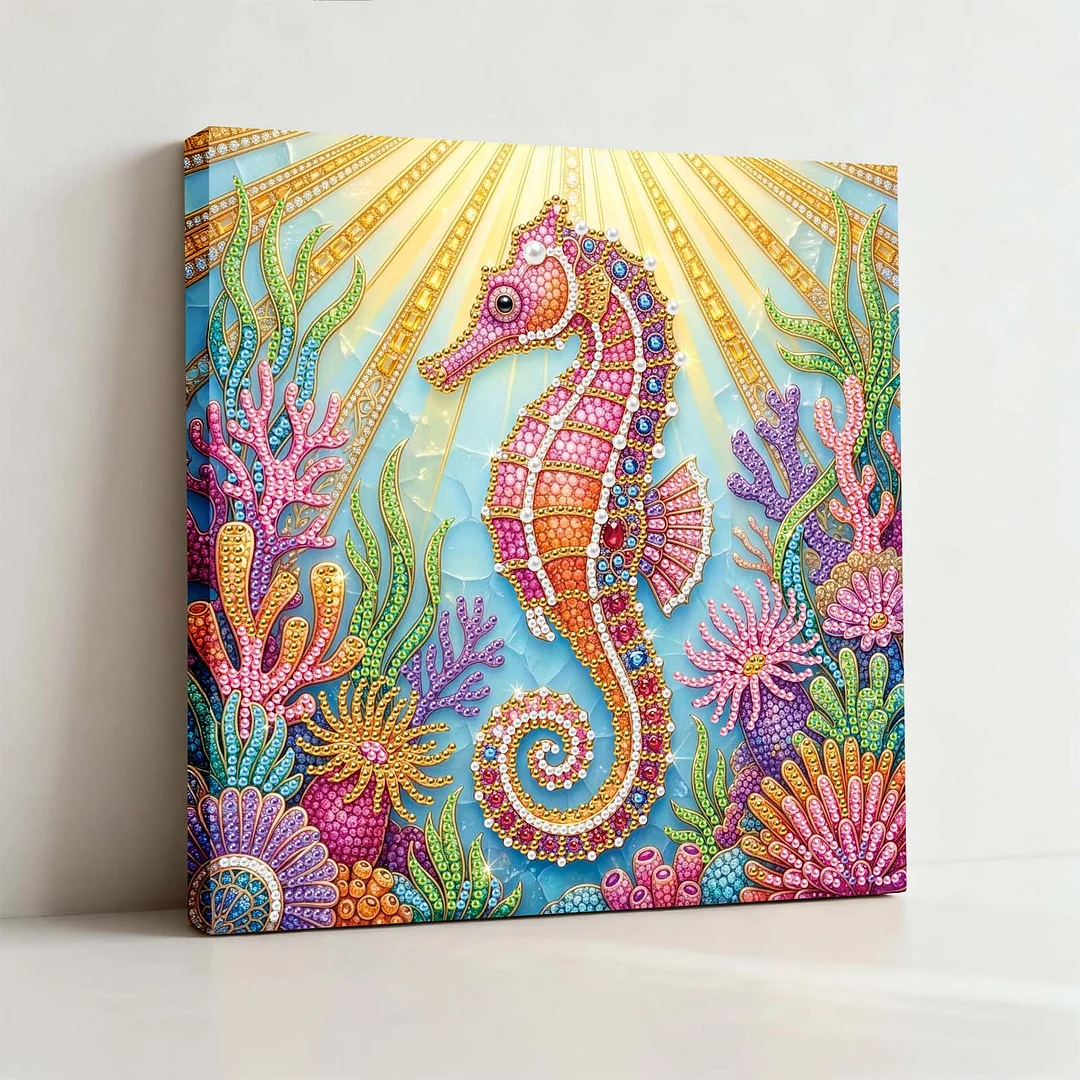 (25x25cm)DIY Seahorse Framed Handmade Pearl Painting Art Craft Kit Living Home Decor