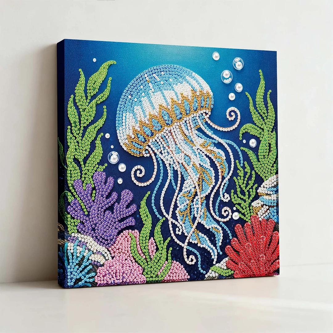 (25x25cm)DIY Jellyfish Framed Handmade Pearl Painting Art Craft Kit Living Home Decor