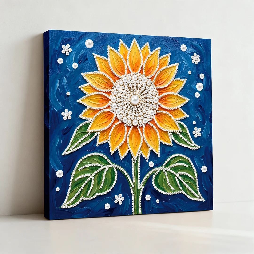 (25x25cm)DIY Sunflower Framed Handmade Pearl Painting Art Craft Kit Living Home Decor
