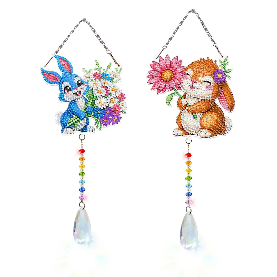 2pcs Flower Bunny Diamond Painting Double-sided Crystal Window Suncatcher Craft Set Birthday Gifts Home Garden Decor Hanging Kit