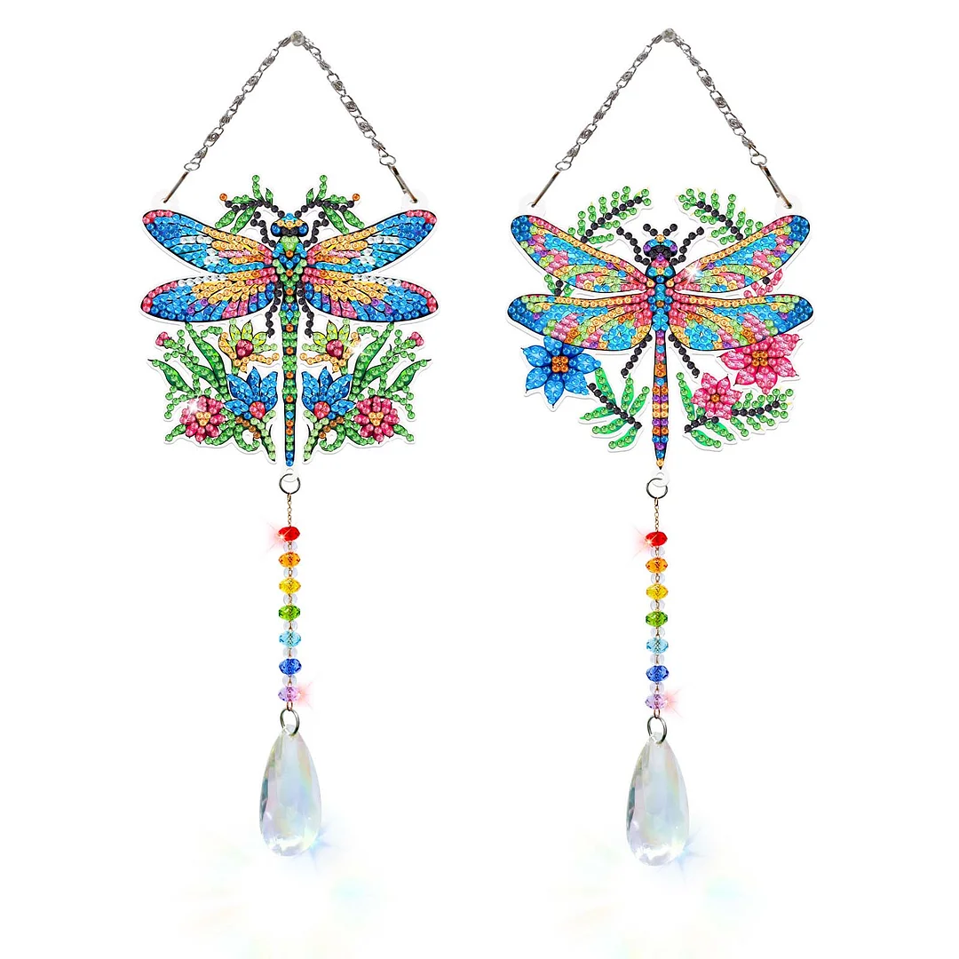 2pcs Dragonfly Diamond Painting Double-sided Crystal Window Suncatcher Craft Set Birthday Gifts Home Garden Decor Hanging Kit