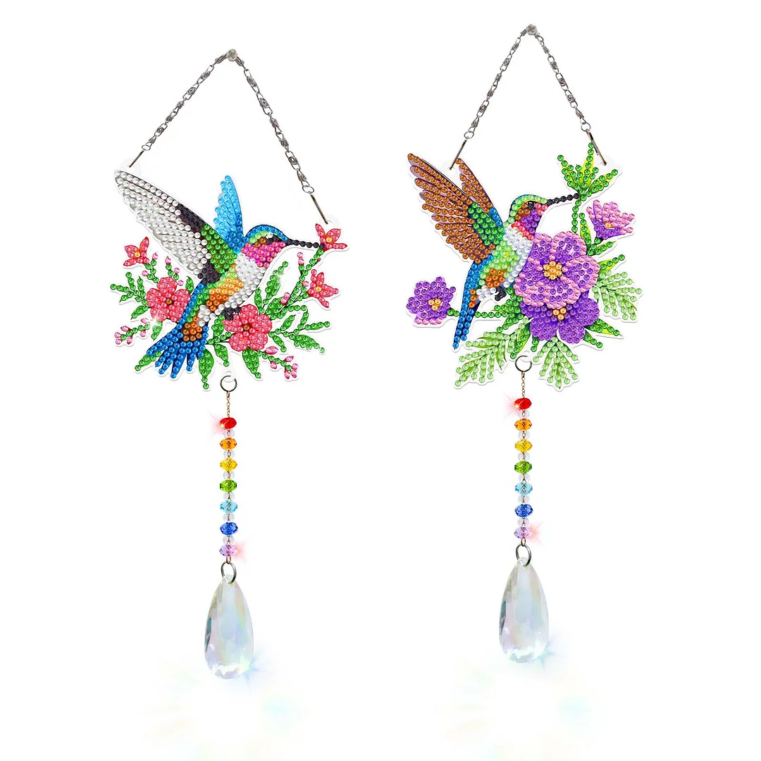 2pcs Flower Bird Diamond Painting Double-sided Crystal Window Suncatcher Craft Set Birthday Gifts Home Garden Decor Hanging Kit