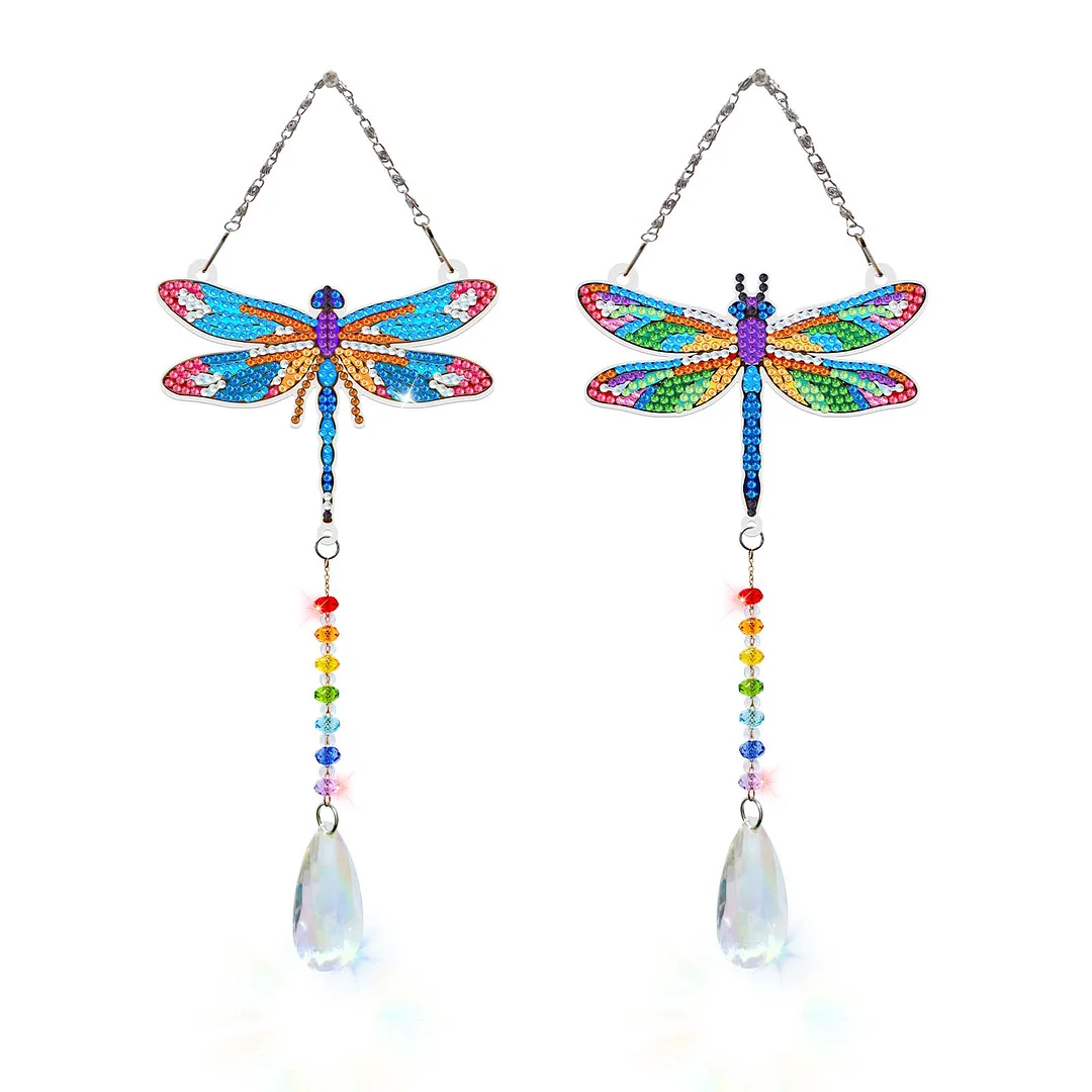2pcs Dragonfly Diamond Painting Double-sided Crystal Window Suncatcher Craft Set Birthday Gifts Home Garden Decor Hanging Kit