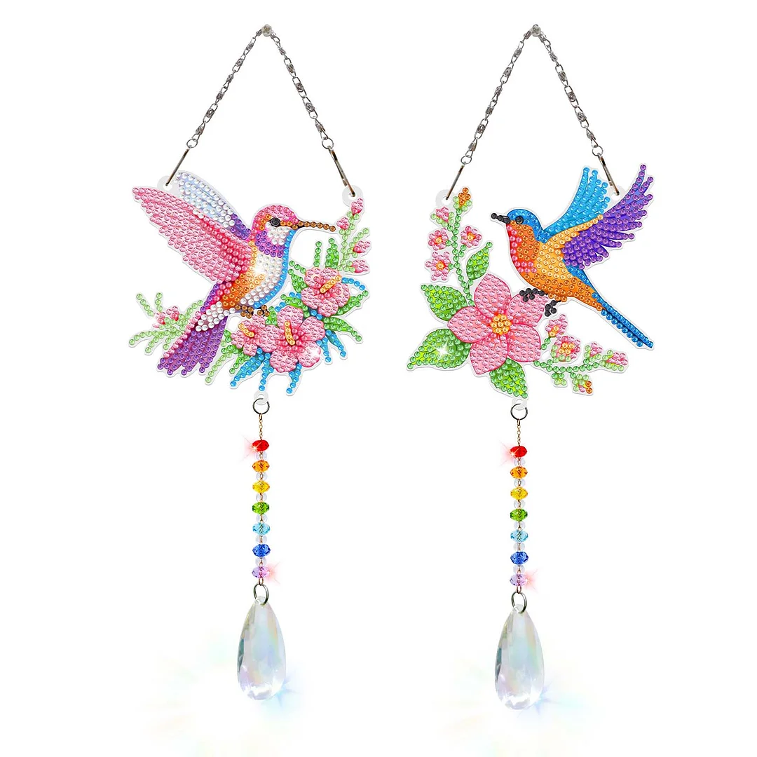 2pcs Flower Bird Diamond Painting Double-sided Crystal Window Suncatcher Craft Set Birthday Gifts Home Garden Decor Hanging Kit
