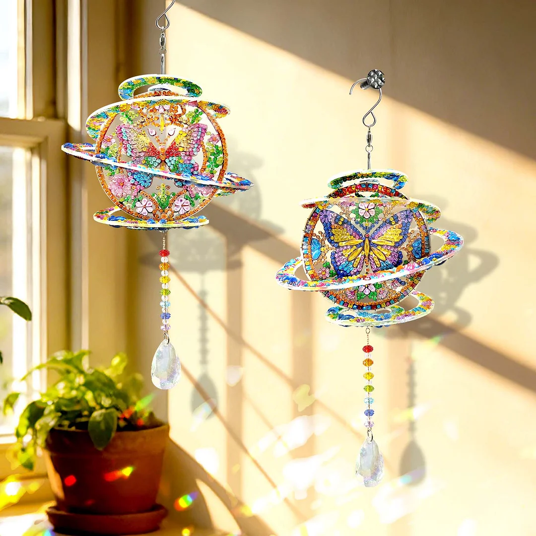 2pcs DIY Diamond Painting Butterfly Wind Chimes Crystal Window Suncatcher Craft Set Birthday Gifts Home Garden Decor
