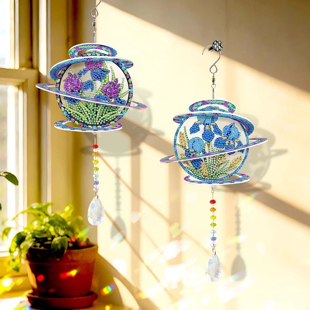 2pcs DIY Diamond Painting Flower Wind Chimes Crystal Window Suncatcher Craft Set Birthday Gifts Home Garden Decor
