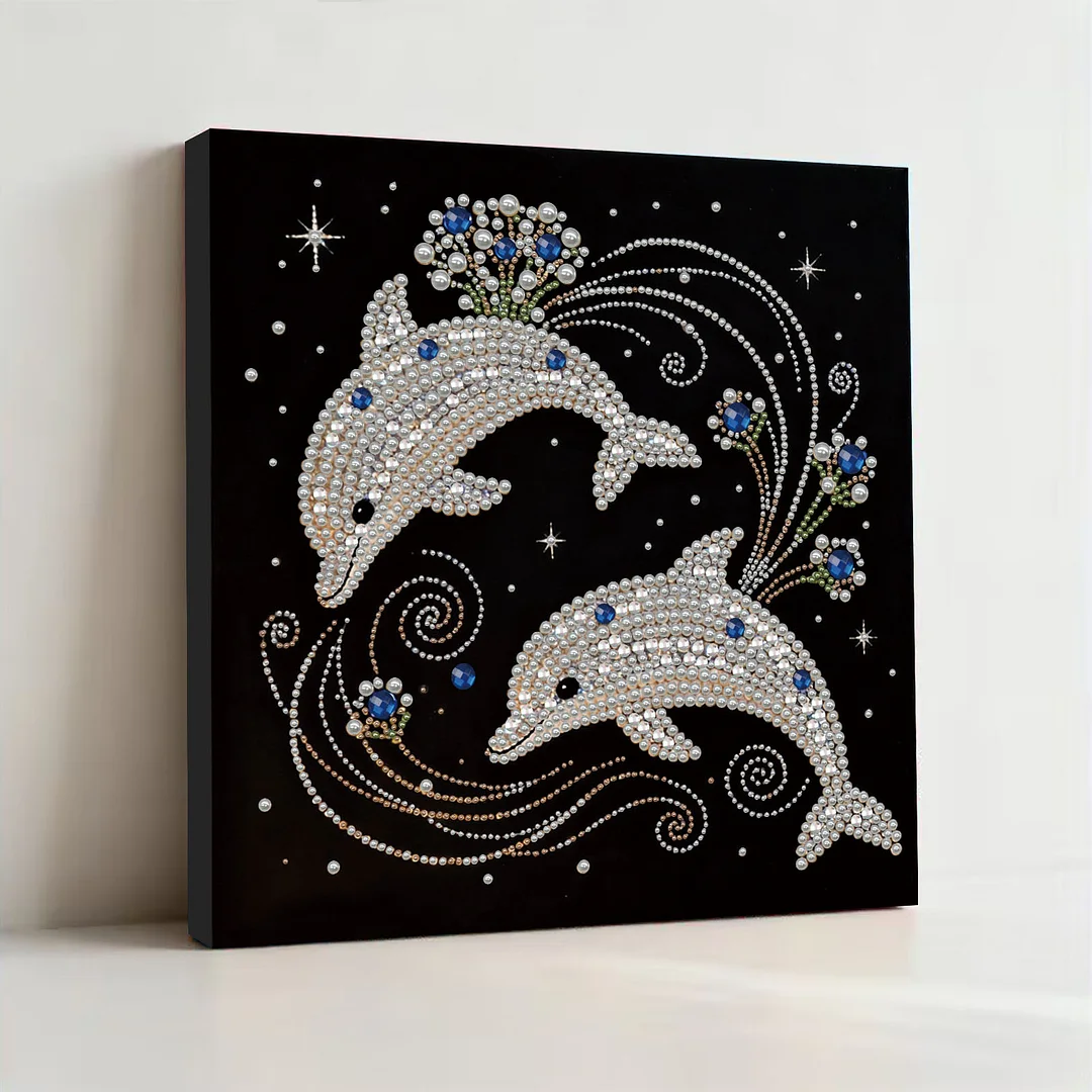 (30x30cm)DIY Pearl Painting Framed Dolphin Handmade Pearl Material Art Kit Living Room Decor