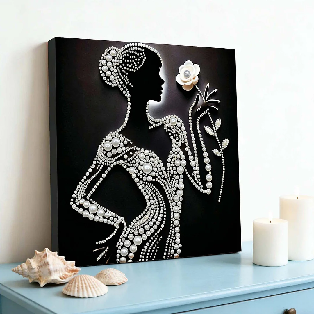 (30x30cm)DIY Pearl Painting Framed Lady Handmade Pearl Material Art Kit Living Room Decor