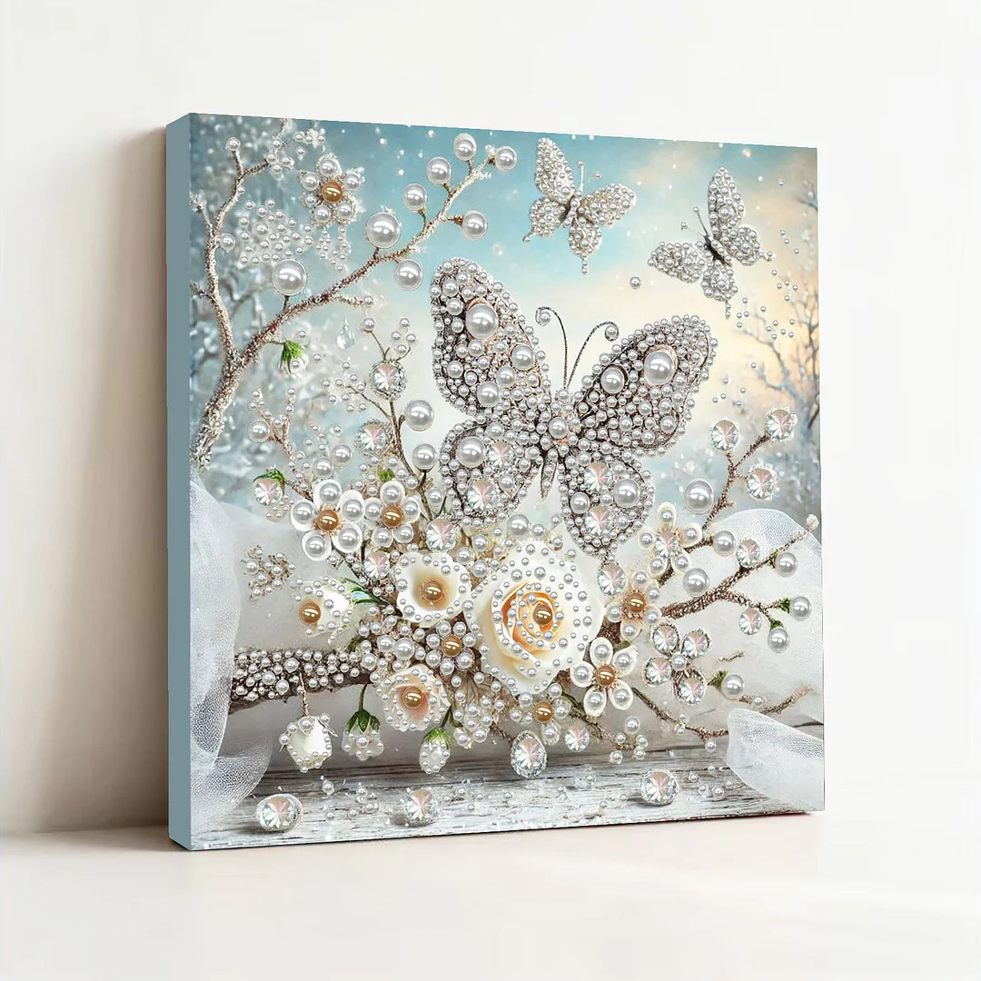 (30x30cm)DIY Pearl Painting Framed Butterfly Handmade Pearl Material Art Kit Living Room Decor