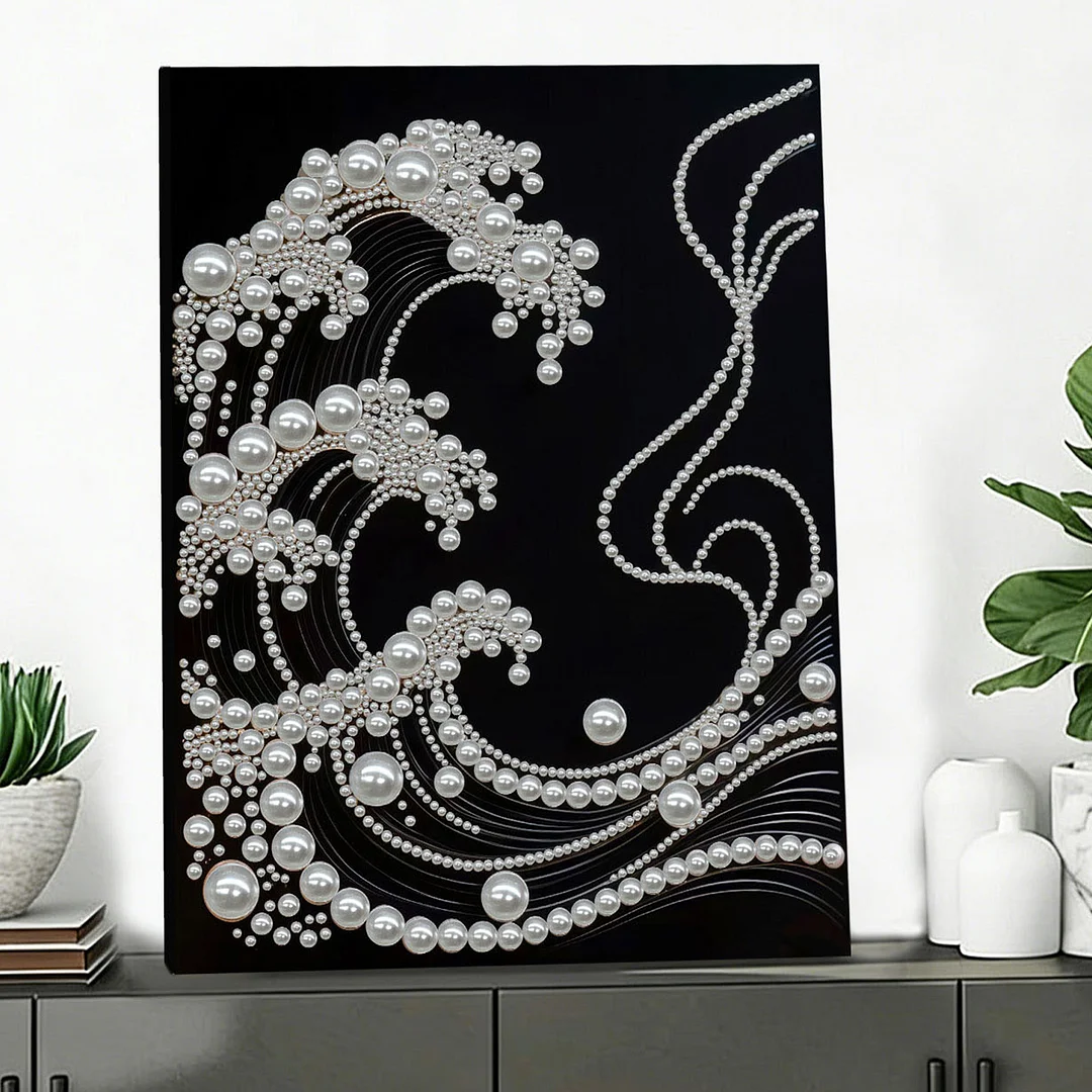 (30x40cm)Big Waves DIY Pearl Painting Framed Grape Handmade Pearl Material Art Kit Living Room Decor