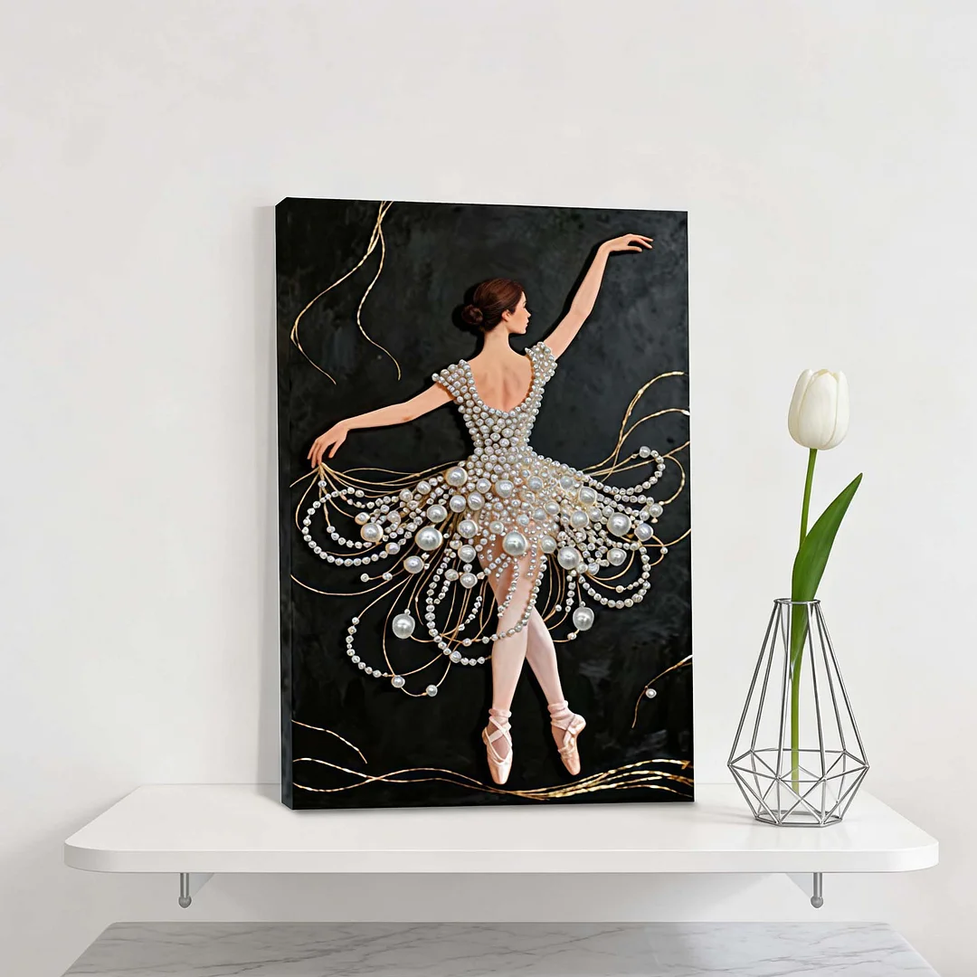 (30x40cm)DIY Pearl Painting Framed Ballet Girl Handmade Pearl Material Art Kit Living Room Decor