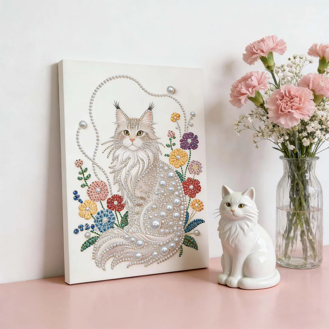 (30x40cm)DIY Pearl Painting Framed Cat Handmade Pearl Material Art Kit Living Room Decor