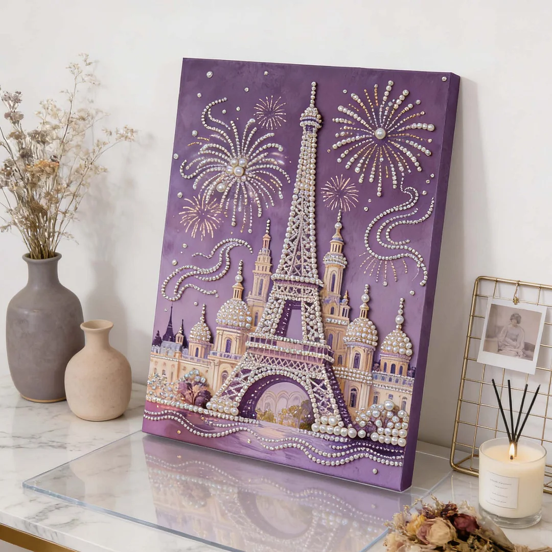(30x40cm)DIY Pearl Painting Framed Eiffel Tower Handmade Pearl Material Art Kit Living Room Decor
