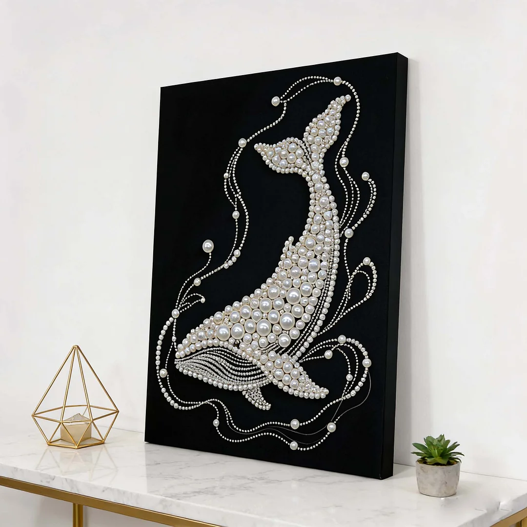 (30x40cm)DIY Pearl Painting Framed Whale Handmade Pearl Material Art Kit Living Room Decor