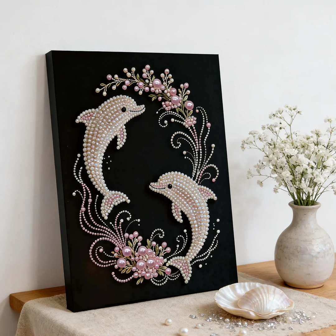 (30x40cm)DIY Pearl Painting Framed Dolphin Handmade Pearl Material Art Kit Living Room Decor
