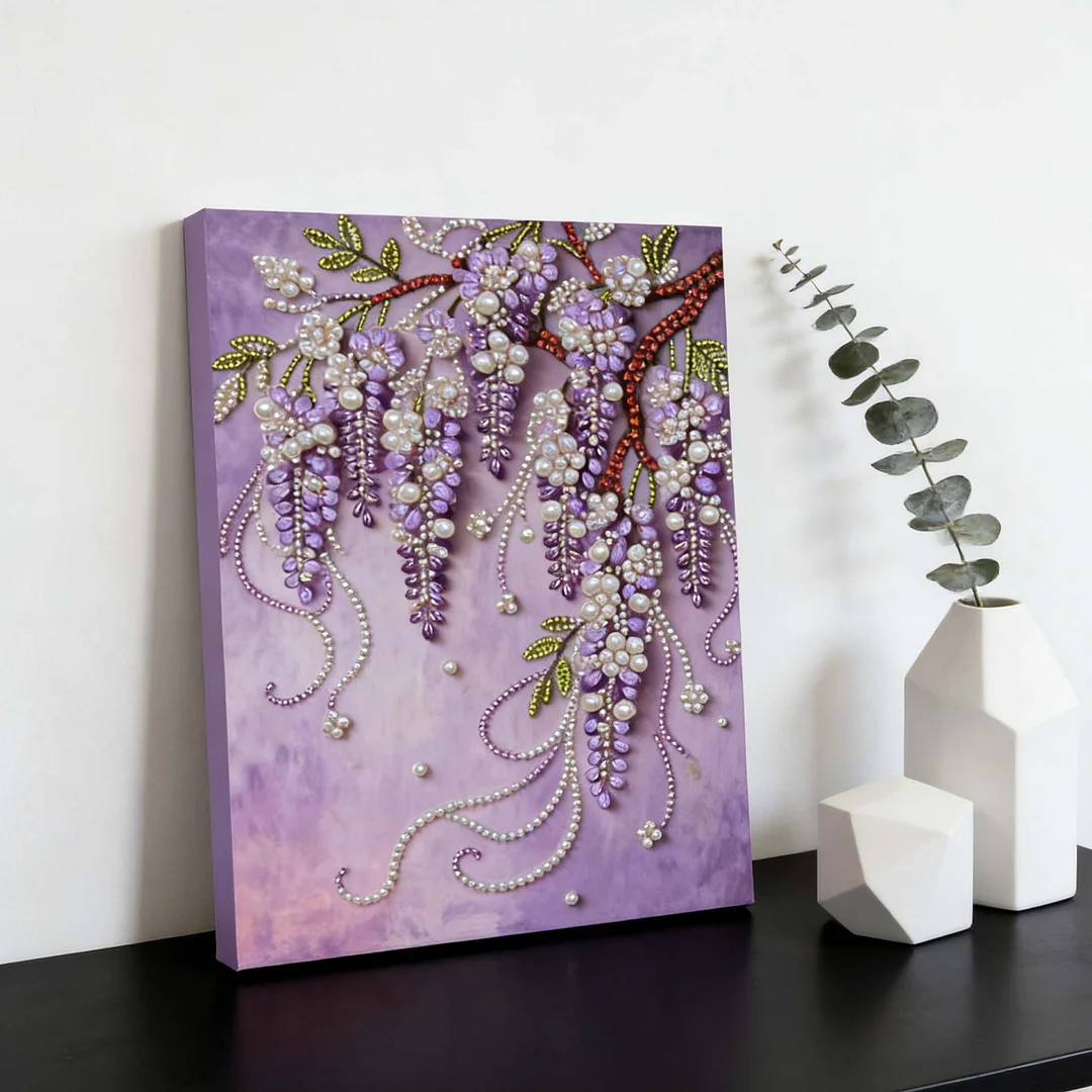 (30x40cm)DIY Pearl Painting Framed Flower Handmade Pearl Material Art Kit Living Room Decor