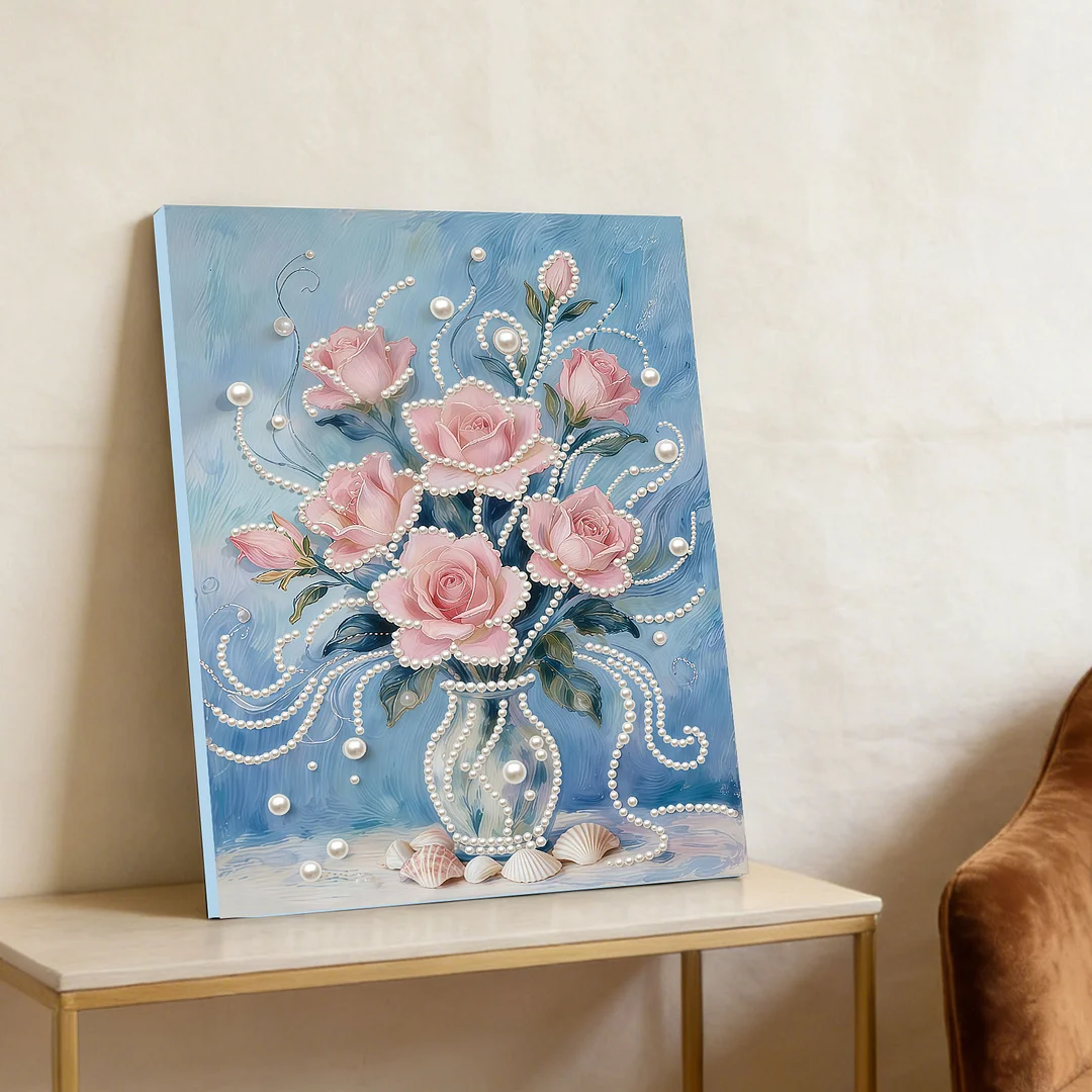 (30x40cm)DIY Pearl Painting Framed Flower Handmade Pearl Material Art Kit Living Room Decor