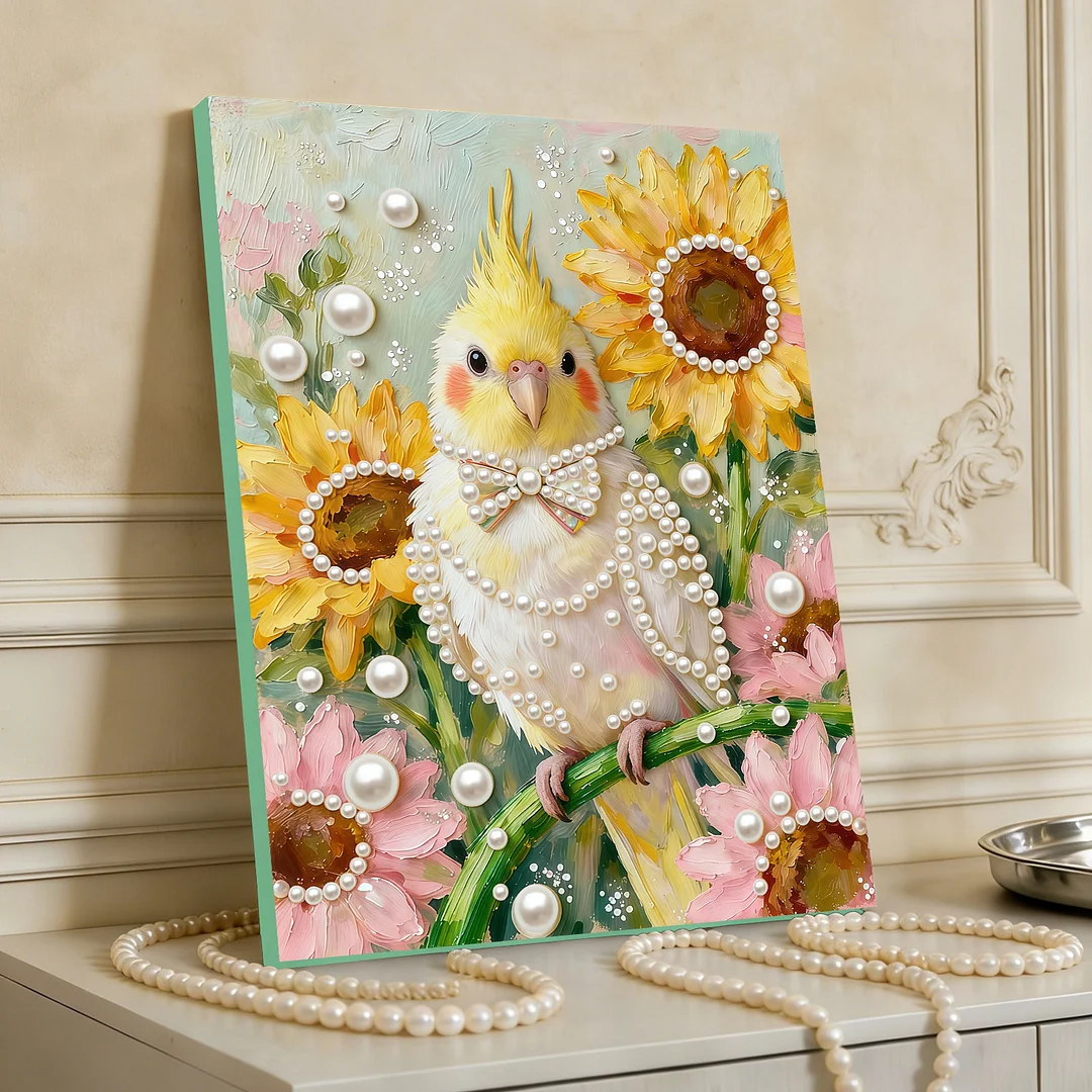 (30x40cm)DIY Pearl Painting Framed Parrot Handmade Pearl Material Art Kit Living Room Decor