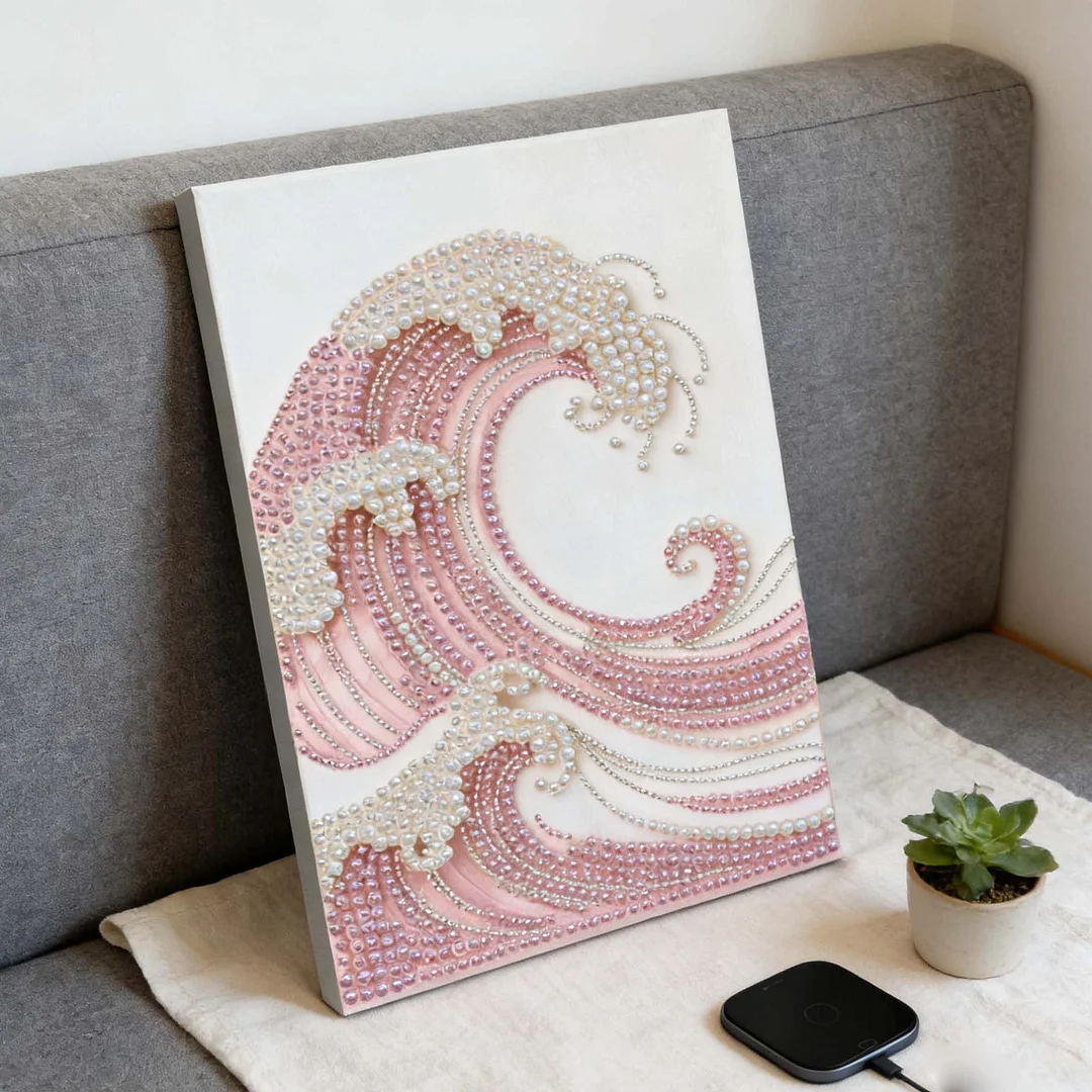(30x40cm)DIY Pearl Painting Framed Pink Wave Handmade Pearl Material Art Kit Living Room Decor