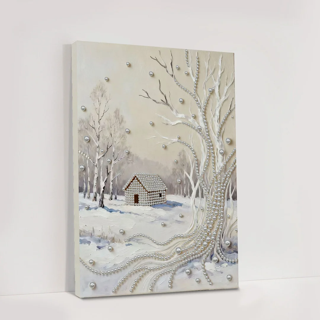 (30x40cm)DIY Pearl Painting Framed Winter Handmade Pearl Material Art Kit Living Room Decor