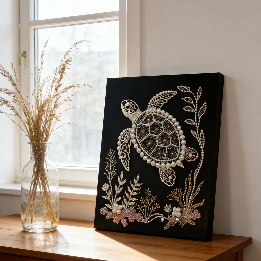 (30x40cm)DIY Pearl Painting Framed Turtle Handmade Pearl Material Art Kit Living Room Decor