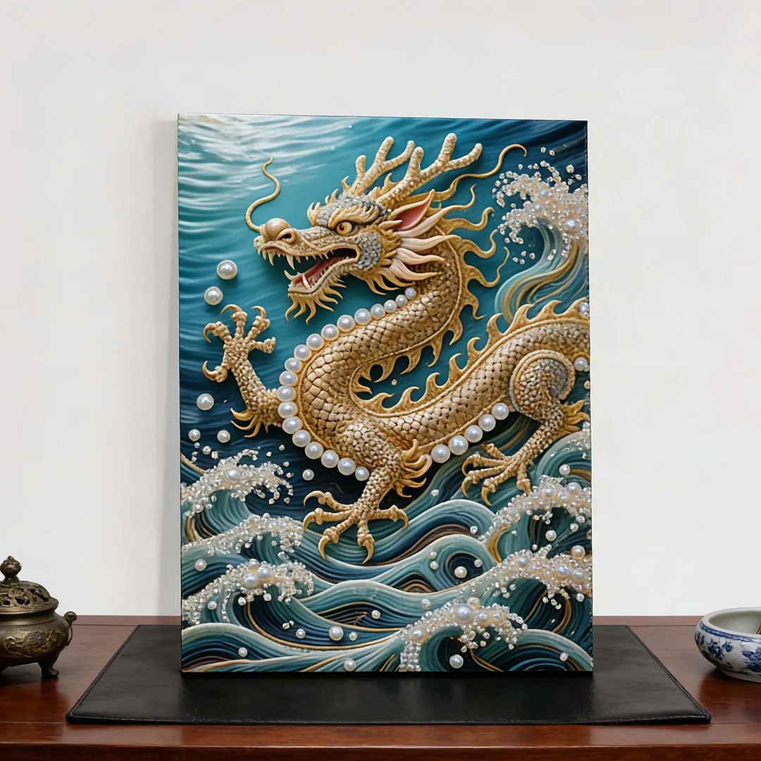 (30x40cm)DIY Pearl Painting Framed Dragon Handmade Pearl Material Art Kit Living Room Decor