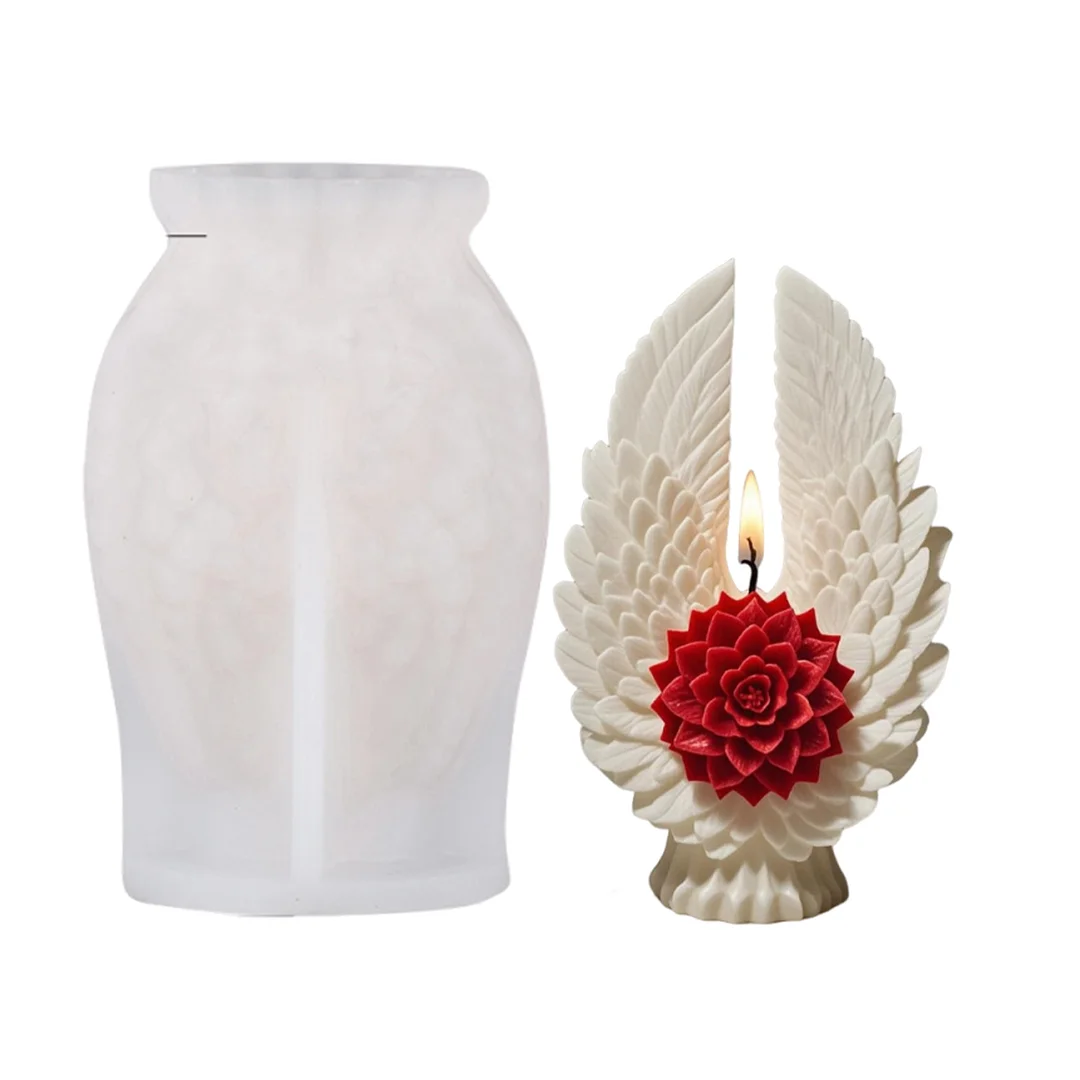 1.Romantic Angel Wings Design: The flower mould features an elegant wrap-around angel wings shape cradling a central dahlia, blending sacred sentiments and romance. Finished pieces serve as both fragrant candles and artistic tabletop decor.