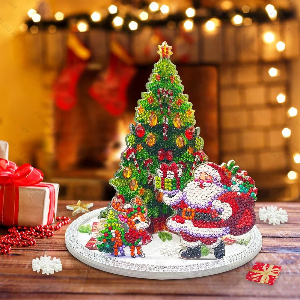 5. After the diamond is attached, stick the double-sided tape on the bottom of the Christmas tree ornament, tear off the double-sided tape, insert the base, string the small pendant with a rope, and hang it on the Christmas tree