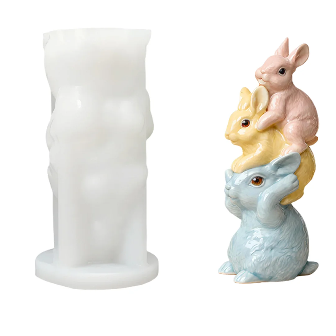 Selling point content3D Stacking Rabbit Silicone Candle Mould Reusable Handmade Easter Soap Mould For Candle Making Craft Festival Decoration