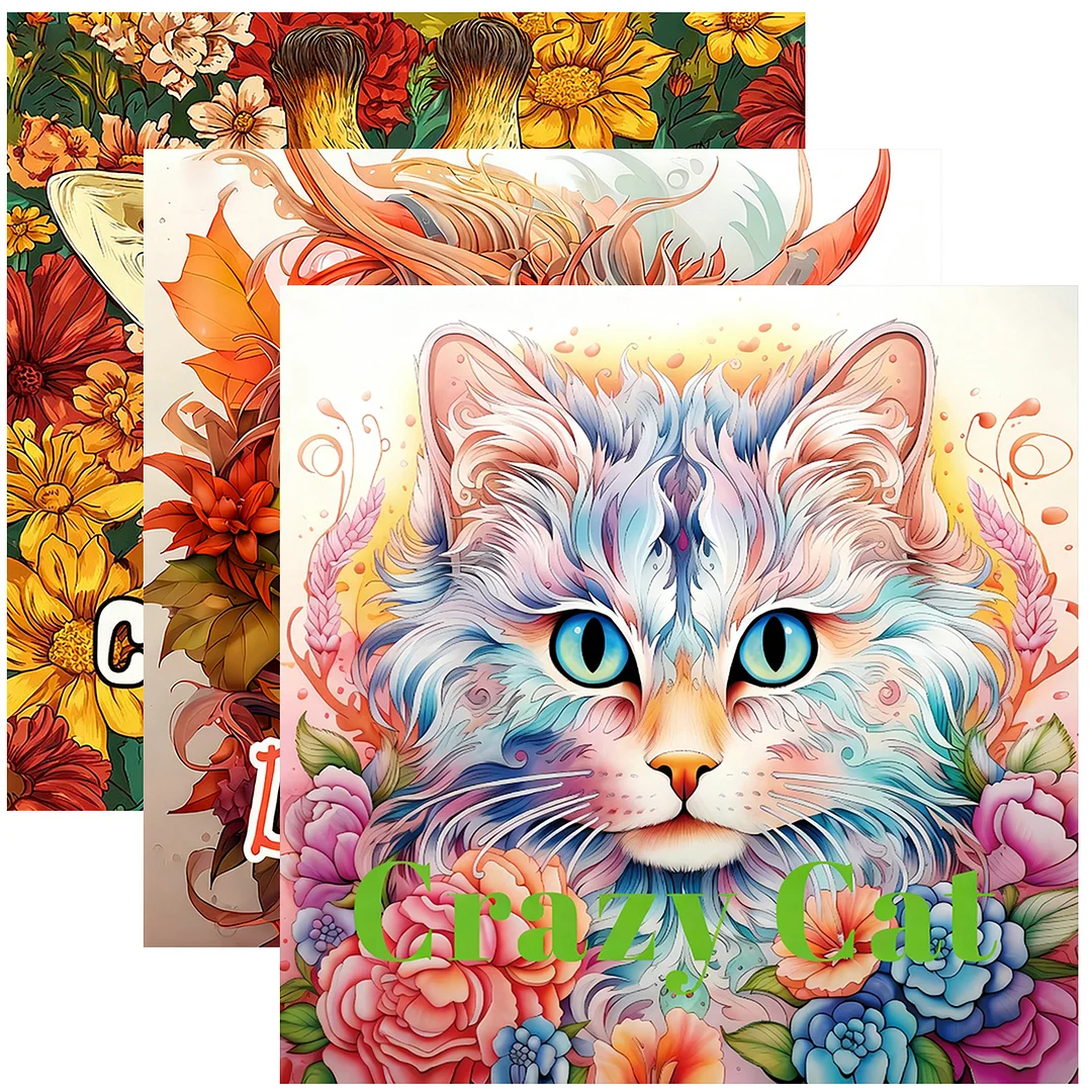 3PCS Crazy Cat Coloring Book Set Mindfulness Art Books for Adults