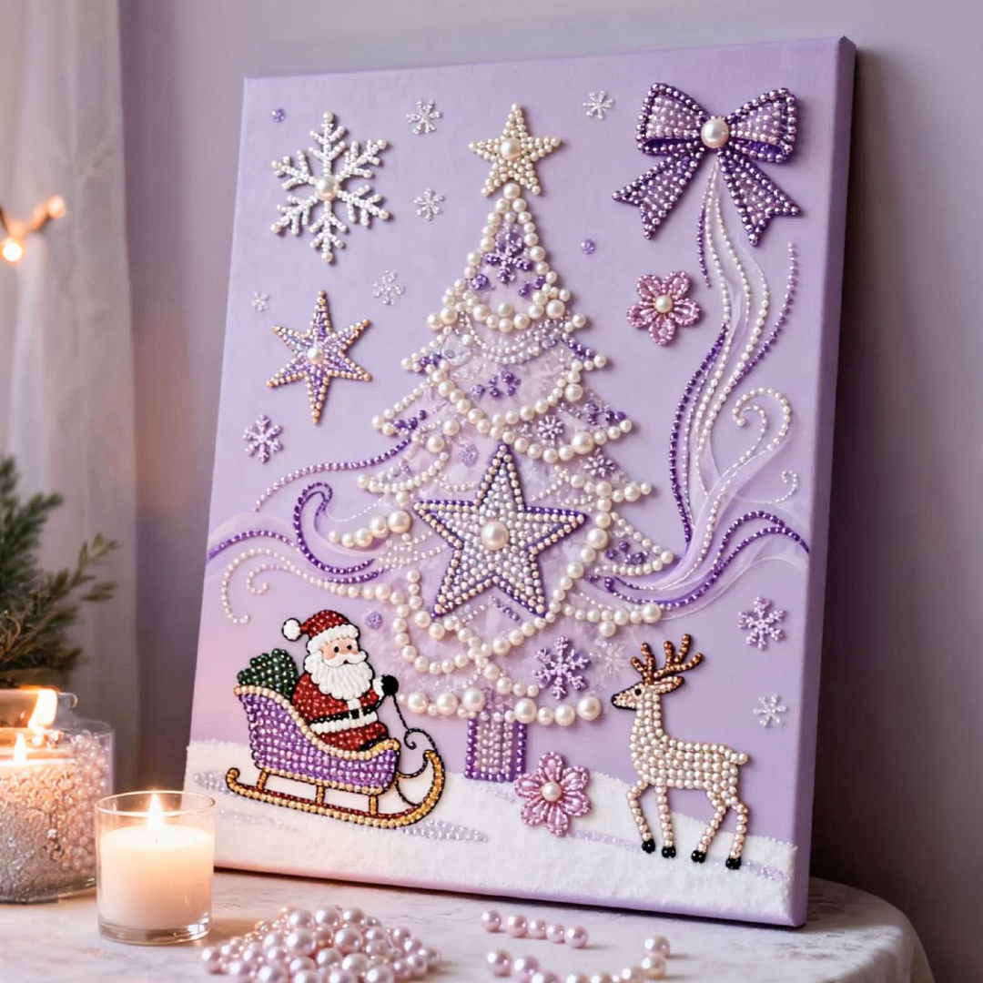 (40x50cm)DIY Pearl Painting Framed Pink Xmas CHandmade Pearl Material Art Kit Living Room Decor
