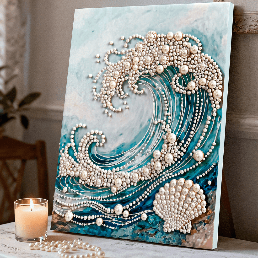 (40x50cm)DIY Pearl Painting Wave Shell Framed Handmade Pearl Material Art Kit Living Room Decor