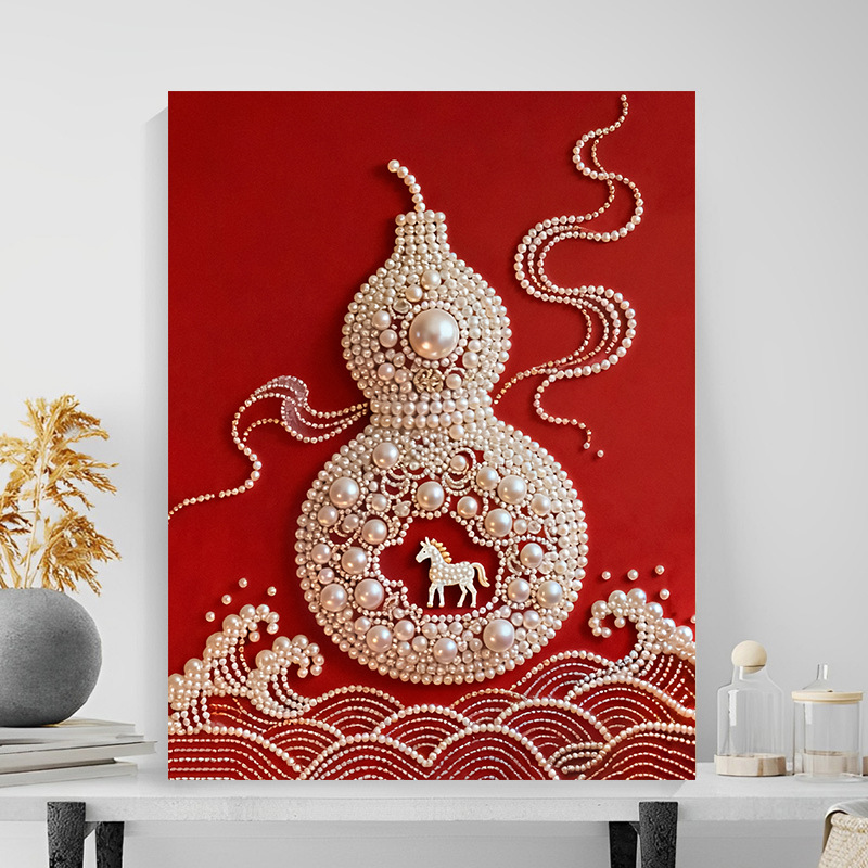 (40x50cm)DIY Pearl Painting Framed Magic Gourd Handmade Pearl Material Art Kit Living Room Decor