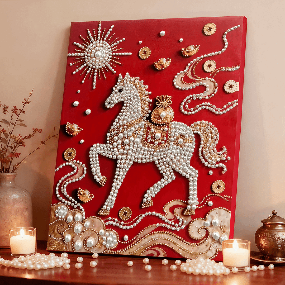 (40x50cm)DIY Pearl Painting Framed Horse Handmade Pearl Material Art Kit Living Room Decor