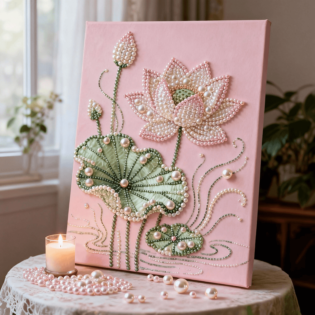 (40x50cm)DIY Pearl Painting Framed Lotus Handmade Pearl Material Art Kit Living Room Decor