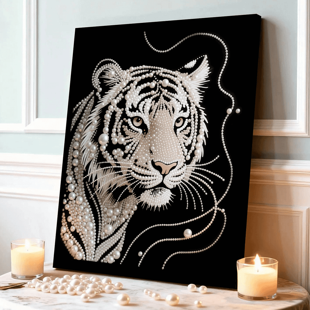 (40x50cm)DIY Pearl Painting Framed Tiger Handmade Pearl Material Art Kit Living Room Decor