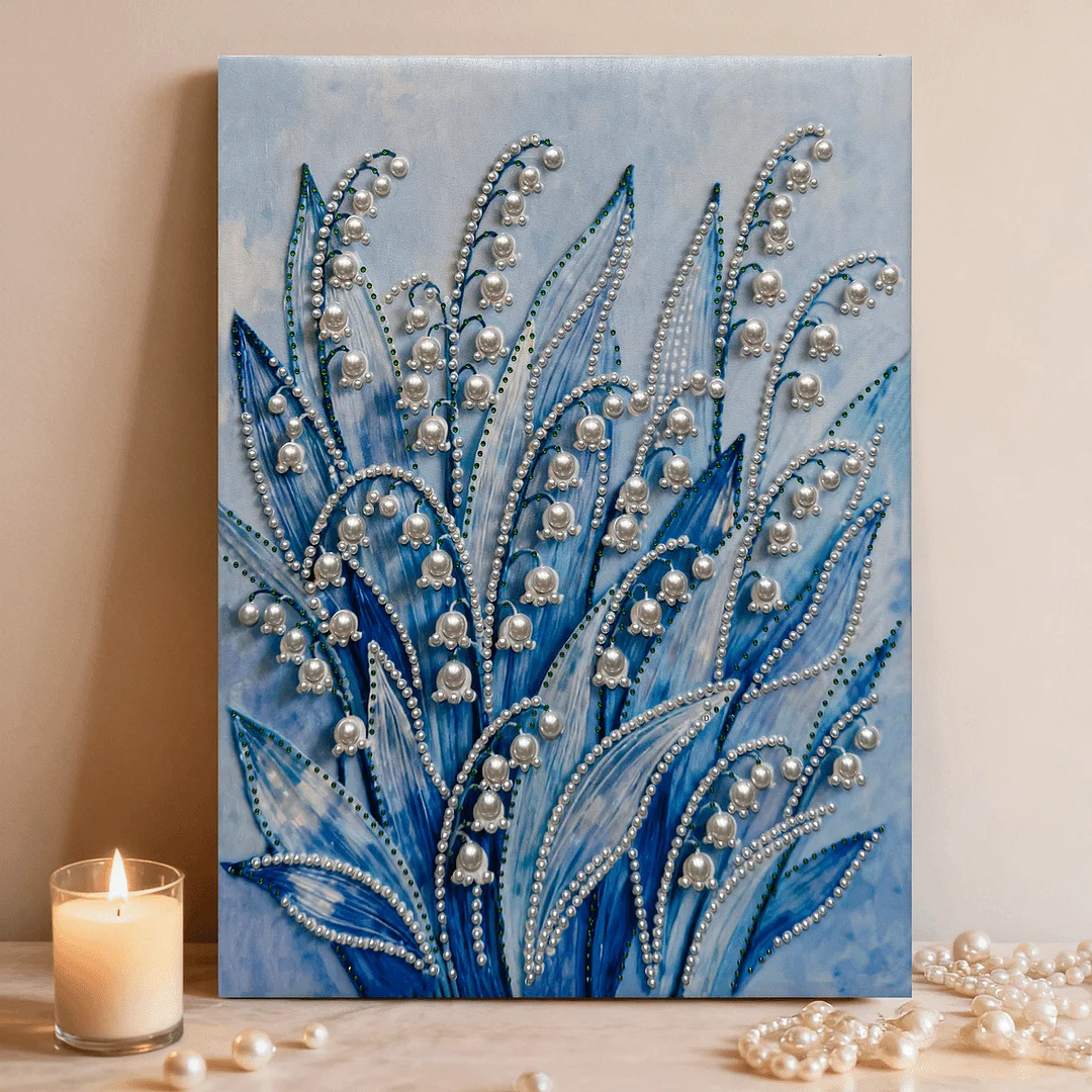 (40x50cm)DIY Pearl Painting Lily of the valley Framed Handmade Pearl Material Art Kit Living Room Decor