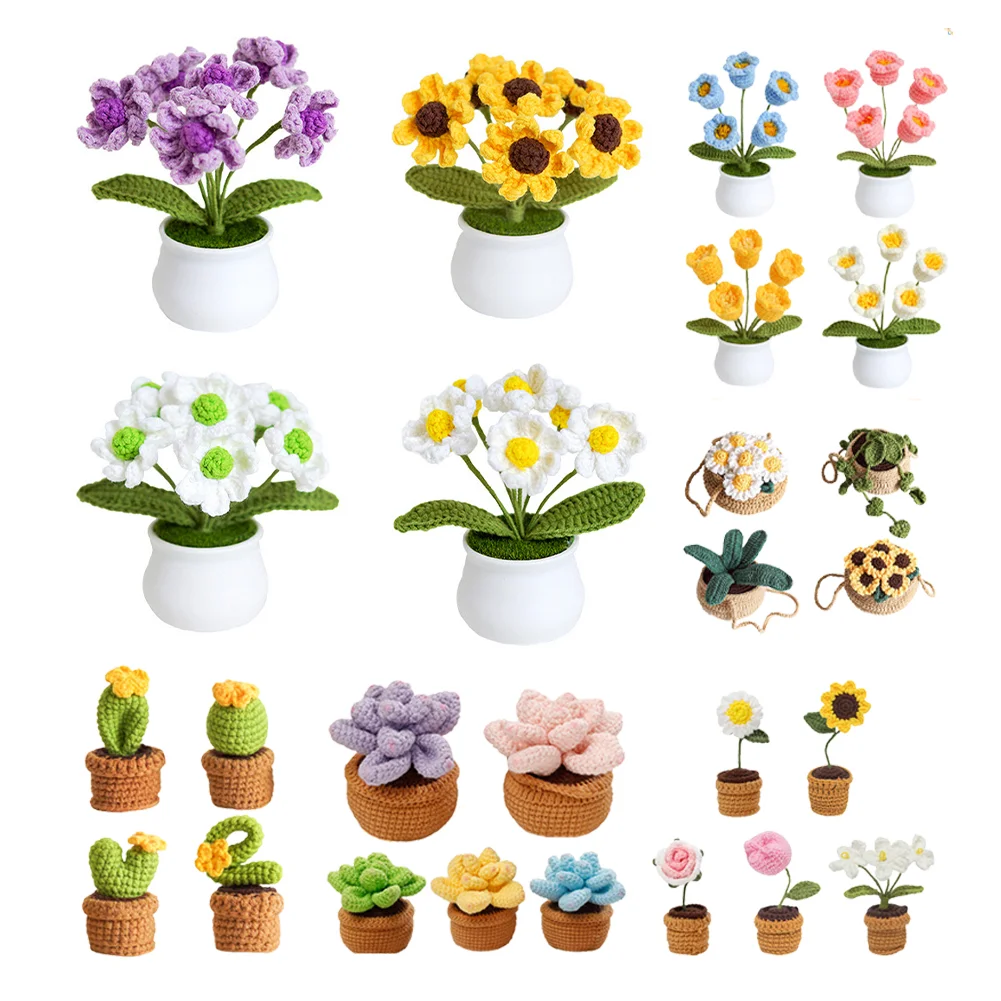 4Pcs Potted Plants Crochet Kit DIY Crochet Starter Kit with Step-by-Step Video Tutorials Knitting Kit for Beginners Adults