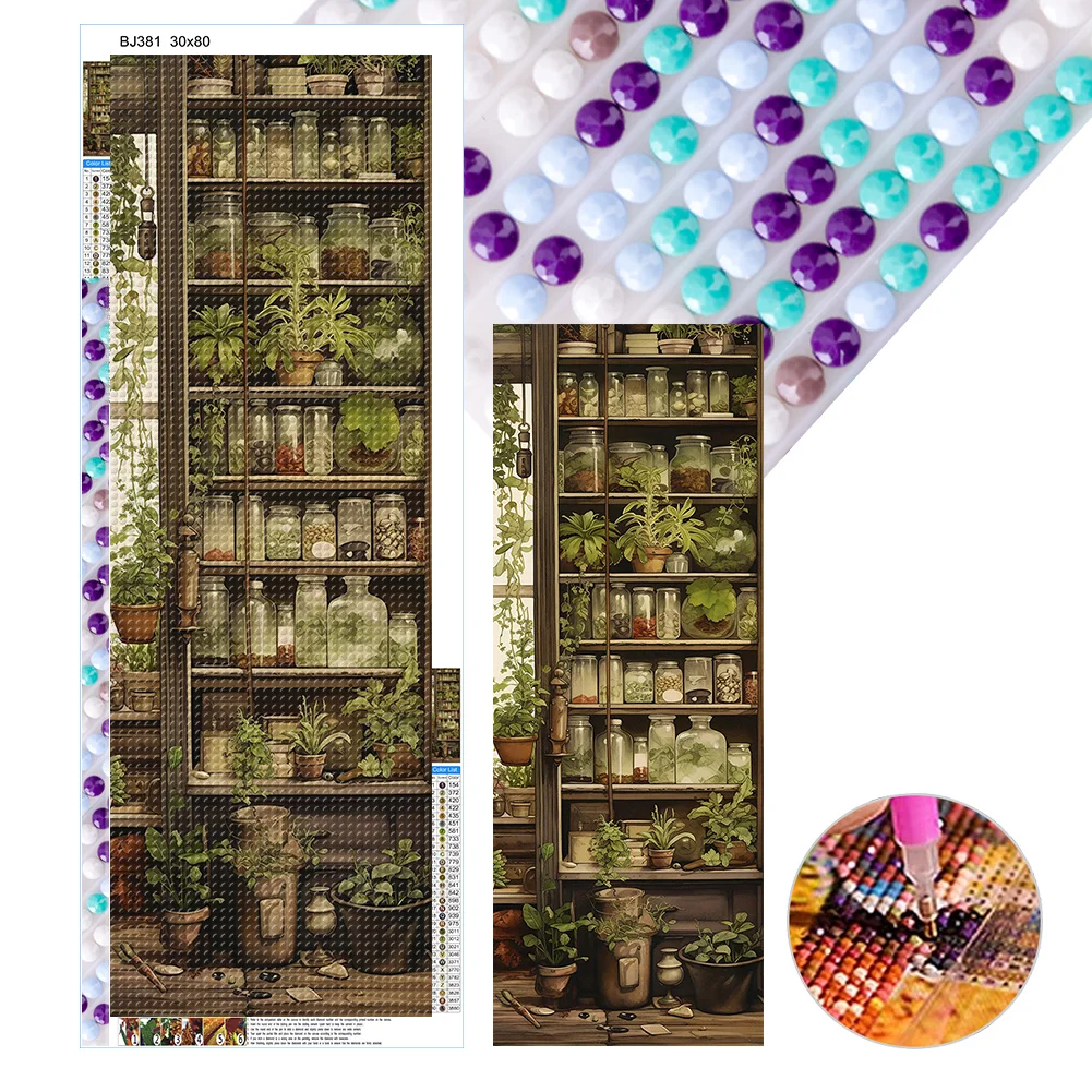 >SALE<5D DIY Full Round Drill Diamond Painting Herbal Medicine House Craft 30x80cm