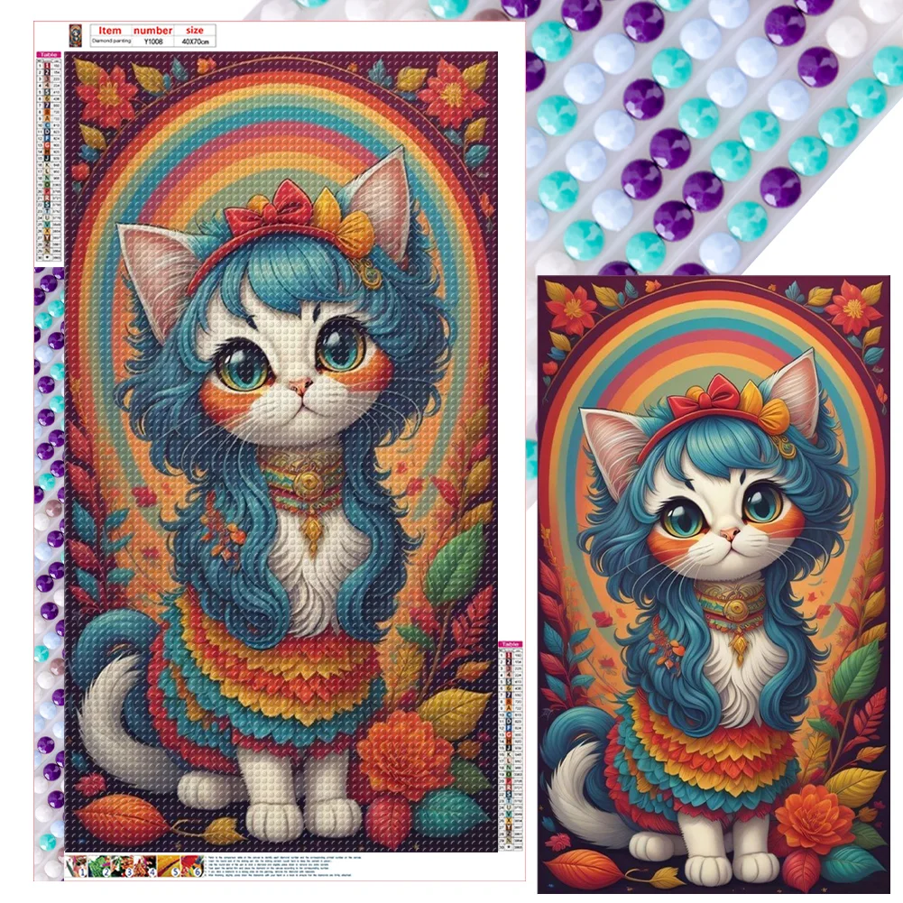>SALE<5D DIY Full Round Drill Diamond Painting Rainbow Cat Kit Home Decoration 40x70cm