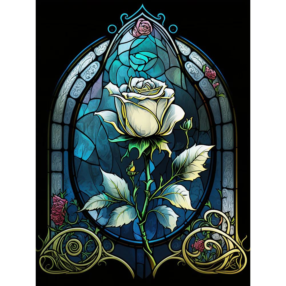 >SALE<5D DIY Full Round Drill Diamond Painting Stained Glass Rose Kit Decor(sz4133)