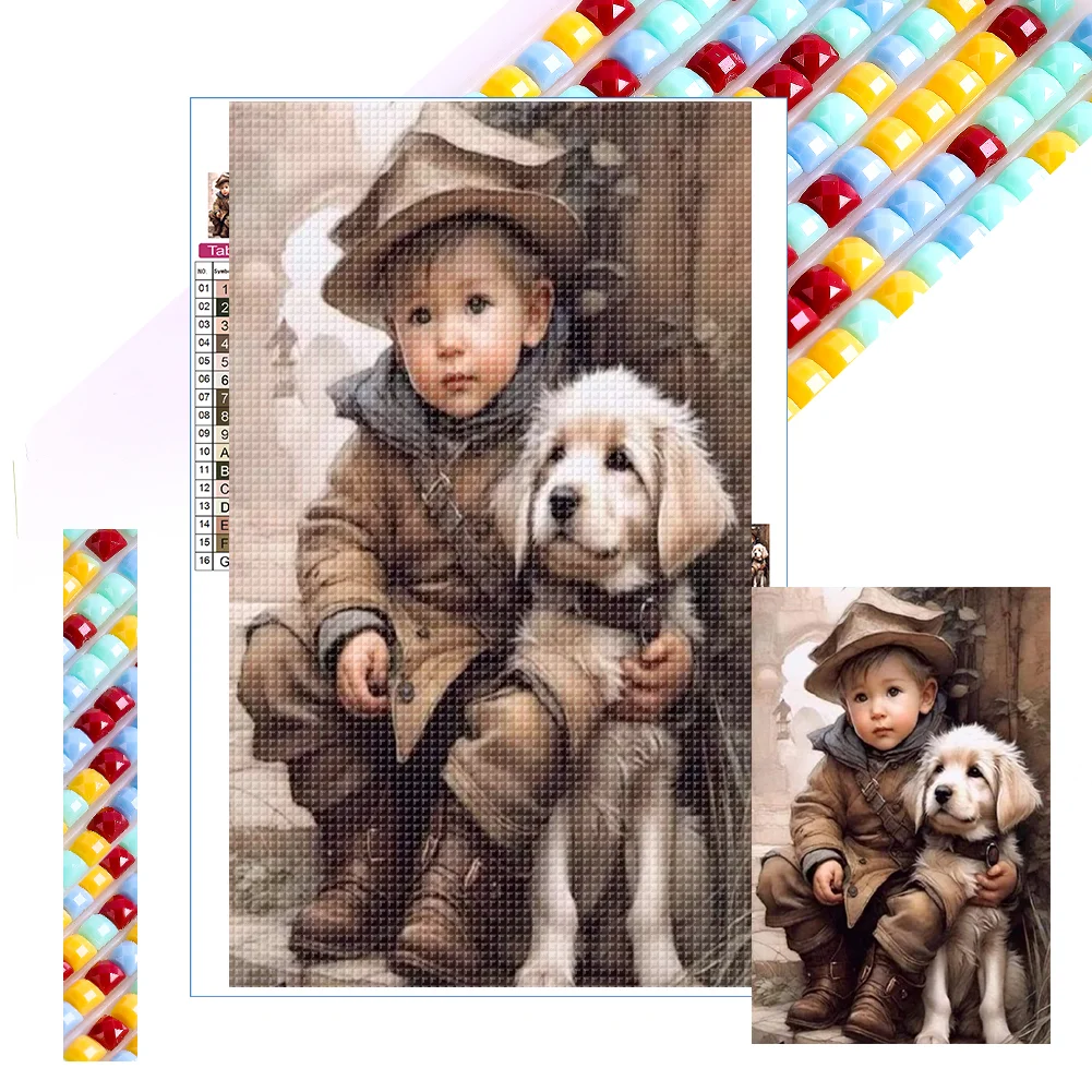 >SALE<5D DIY Full Square Drill Diamond Painting Boy and Dog Home Decor Art 20x30cm
